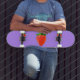 Morango Vermelho muito suculento sobre fundo roxo no estilo Pop art.
