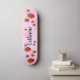 Morangos bonitos sobre fundo rosa marmoreado criam uma aparência divertida neste skate Isto pode ser usado para skate ou como decoração de parede no quarto. Adicione um nome para adicionar um toque mais pessoal a um quarto de criança ou adolescente.