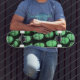 Uma pop arte inspirou a composição com múltiplas imagens em colisão da Mona Lisa digitalmente gravadas com um tom verde.