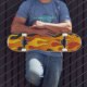 Chamas alaranjadas, amarelas, e vermelhas brilhantes contra um fundo preto. use apenas ou com nossos chapéu e chaveiro de harmonização.
