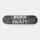 Legal skateboard com fundo de quadro negro com corações e escritos brancos, com a frase "Nascer a skate" em uma fonte moderna de grafite.