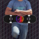 O skate de Neon Dragon é para skateboarders e fãs de skate que também são jogadores de jogos, fãs de fantasia, artistas marciais, fãs de monstros, Pagans, fãs de Sword & Sorcery, reatores, cosjogadores, coletores de dragões ou pessoas que simplesmente gostam de dragões. Neon Dragon faz parte da série Black Dragon e é a arte tribal original Steamy Raimon.