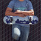 Primeiramente em uma série de plataformas com arte do impressão de uma série de várias cidades dos E.U.
