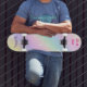skate do Rainbow com nome personalizado e legenda Rainbow Personalizado skateboard CLIQUE em PERSONALIZAR MODELO OPTION E ENTER o NOME. você também pode personalizar outra legenda. Legal skate projetado com cores vivas e para o fundo e um unicórnio funky andando de skate. Este skate faz uma ideia de presente de excelente para um amante de unicórnio.