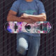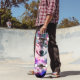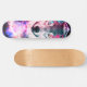 Este design do espaço apresenta um lobo com fumaça vibrante, azul e rosa, saindo de seus olhos sobre um planeta com um show geométrico de luz neon. #lobo #espaço #animais #natureza #legal #galáctica #neon #smol #moderna #lua #vibrante #trendy #geométrico #estrelas #planeta #skateboard #espaçonave #moderna #moda #vibrante #geométrica #estrela #geométrica #planeta #espaçonave