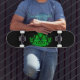 Skate O monstro verde da chama no céu estrelado