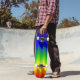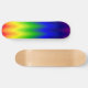 Quase aparecendo como chamas gêmeas, o design do arco-íris deste skate fabuloso começa no fim vermelho escuro do espectro, cintilando para cima à violeta. Adicione um pop quente da cor a sua experiência do embarque!