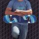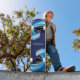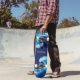 Este design de skate tem uma ilustração de ondas selvagens com o texto padrão personalizável "poseidon". É um simples design dominante.
