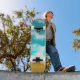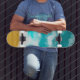 Teal, azul e bronzeada, ondas de praia arenosas skatistas, arte digital oceânica.
