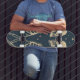 Esta design de skate escura e romântica apresenta um casal esqueletal trancado em um abraço, representando as complexidades do amor e da morte.