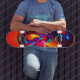 Skate Padrão Azul Vermelho Abstrato Floral Moderno #07