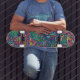 Este vibrante e atraente design multicolorido com muitos mostra como é decorativo este skate.