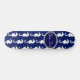 Um padrão infinito e sem descontinuidades de cavalos marinhos brancos silhuetas sobre um fundo azul oceânico marinho. Um clássico para decor náutico ou costeiro. Personalize de acordo com o seu gosto.