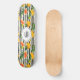 Esse skate de padrão uniforme explode com frescura, apresentando laranjas, limões e limões — inteiros e meio fatiados — colocados entre folhas verdes e peludas. Os elementos cítricos pop contra fundo verde e branco, com faixas verticais, combinando vibrações frutíferas com uma estética macia e limpa. Perfeito para vibrações de verão, temas tropicais e designs divertidos e leves.