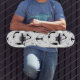 Skate Padrão de Gato Preto Esbranquiçado Whimsical
