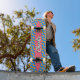 Com retrorreflectores e contrastes vibrantes, este skate legal apresenta um desenho abstrato geométrico moderno do século médio de semicírculos cor de laranja. Personalize com seu nome na tipografia retrorreflectora, na seção central rosa. Um presente que chama a atenção e um presente individual para um skate.