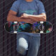 Este skate apresenta um design fractal moderno e colorido sobre fundo preto. Eterno e legal para seus esportes! Também é um belo presente para ele e para ela em qualquer ocasião.