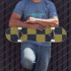 Skate Padrão Verificado Dourado e Marinho Elegante