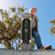 O skate monograma apresenta um design moderno e legal com um conjunto de cores. Personalize o conselho de mapeamento com o número ou as iniciais desejados. Também, faz um presente de excelente. Use a modelo para criar seu próprio skate monograma.