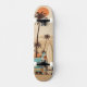 Abraçar as vibrações do passado com este design de skate nostálgico. Apresentando cores ousadas, desbotadas pelo sol, palmeiras icônicas e pranchas de surfe clássicas alinhadas em uma praia arenosa, esse conselho captura a essência da cultura dos surfs retrorreflectores. Perfeito para aqueles que andam com um toque de talento vintage.