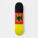 Esta imagem mostra a bandeira da Alemanha. A bandeira é constituída por três bandas horizontais de preto, vermelho e ouro, com uma águia preta centrada na banda vermelha. A águia tem um bico e garras amarelos e é posicionada com as asas espalhadas. O design geral é simples, mas impressionante, simbolizando a história e a identidade do país.
