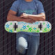 Prepare-se para ir às ruas em estilo com este skate tipo um com um néon verde vibrante e design de tinta azul clara para spray. Descoberto com estrelas e a ousada declaração "Tempo de Gração", este skate é incontornável para qualquer skatista que queira fazer uma declaração. Quer você esteja cruzando as ruas ou batendo no parque de skates, este skate certamente vira cabeças e mostra seu estilo exclusivo. Não perca sua chance de pegar este conselho atraente e mostrar suas habilidades em estilo!