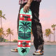 Skate Palm Tree Turtle Silhouette Red Green Initial