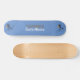 Design de skate moderno apresenta Califórnia em cinza angustiada com Papais noeis Monica em uma fonte branca moderna com palmas geométricas e montanhas logotipo gráfico em fundo azul