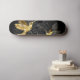 Joias pretas e douradas, beija-flores, sobre fundo de cinza decorado com plantas. Pássaros joalharia. Pássaro ouro. Pássaro Dourado.