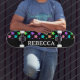 Elevem o vosso skate com este espantoso e personalizado pasto de skate Pastel Rainbow Ombre Stars. Apresentando um design de estrelas de cor pastel em um padrão em arco-íris contra um fundo preto elegante, este andar de skate certamente vira cabeças no skate park ou nas ruas. O skate artesanal é uma obra de arte, com belos gráficos e um design único que é brincalhão e mesmerizador. O toque personalizado adiciona uma camada extra de personalização ao conselho, fazer-o como uma peça verdadeiramente única e especial. Então, se você está procurando por um skate tão bonito quanto funcional, não olhe mais além do que esse pasto personalizado do Pastel Rainbow Ombre Stars Skateboard. Faça o pedido agora e experimente o que há de mais avançado em estilo de skate e personalização.
