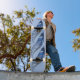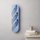 Penas em tons de azul. Três penas sobre fundo azul claro.