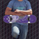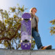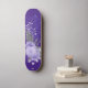 O skate de marca Dd fez um roxo na cor damasco roxa, com gráficos de penas prateadas e violetas roxas e rosas de lavanda. Personalize para adicionar seu próprio texto.