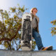 Skate Pensionador cego com um Stick