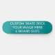Placa técnica do SKATE PERSONALIZADA DECK 8 1/2" - Plano de fundo TEAL (personalize ou exclua). Design no seu próprio baralho. Quadros de skate totalmente personalizados. Faça seu próprio conselho personalizado simplesmente carregando uma imagem, foto, padrão, adicionar texto... Apenas o baralho, ou escolha a opção de adicionar Caminhões, Rodas e Fita de Segurar. Andar de skate de qualidade profissional feito apenas com ingredientes de alta qualidade dos EUA - 7 pedaços de madeira de carapaça de Excelente premium colada com cola específica de skate por Franklin. Escolha entre 7 decoques de 3/4", 7/8", 8", 8 1/8", 8 1/4, 8 decoques de 1/2". Faz um presente de excelente para o Natal ou um aniversário.