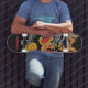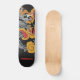 Quadro de skate de dragões de arte asiáticos arrojados personalizados com seu nome em um tipo de sans vermelho. Cor de laranja vermelha e preta.
