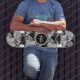 Quadro de skate Monograma com padrão branco preto Personalize um presente exclusivo de Equipamento de Esportes de Fotografias legal para qualquer pessoa. Personalize com seu nome e inicial personalizados. Presente personalizado com sua foto favorita e seu nome ou qualquer outro texto.