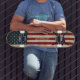 Pirata Americana Personalizada com Espadas Skating é sobre diversão, e há algo para todos na nossa área de skate. Um skate fabuloso garantiu que levanta um sorriso! . Mostre seu orgulho americano ou dê um presente especial com este skate americano Flag em um angustiado design de grunge vestido em madeira. Este design de skate de bandeira americana com estrelas e listras em vermelho branco e azul. Divirta-se com a sua mensagem pessoal... patinando nas ruas e no skate park, ou cruzando.