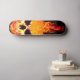 Esta imagem mostra um crânio engolido em chamas. Os olhos do crânio são ocos e escuros, enquanto seus dentes são aparados em um rin ameaçador. As chamas são principalmente tons de vermelho e laranja, com alguns sotaques amarelos, e parecem estar lambendo na superfície do crânio. A atmosfera geral da imagem é intensa e dramática, com forte ênfase no perigo e na agressão.