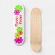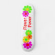 Flores coloridas clássicas brilhantes da década de 60 rodeiam as palavras Excelente "Flor Power" retro-temed skateboard.