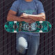 Skate no estilo. Skate com uma plataforma da arte de Joe Morris