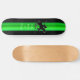 Série desportiva Um design excelente se você ama polo! O Polo é o Esporte dos Reis e este skate também vai servir! Ele apresenta um pônei preto galopante com aparência gravada com um cavaleiro prestes a acertar a bola com a palete. Em uma faixa verde de efeito metálico escovado, altere o texto conforme desejado ou retire o vazio.