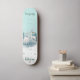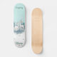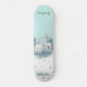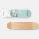 O skate de marca Dd do Groom foi feito na casa de banho com gráficos de dois veados brancos com árvores como pano de fundo. A metade inferior do skate é feita em branco com pontos de pele e menta. Personalize o texto colorido do chá para ler o que você quer. Está disponível a horta da noiva com conselho de rosas brancas.