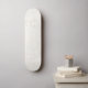 Este design branco esbranquiçado apresenta um simples fundo branco acentuado com pequenos pontos numa paleta primavera de musgo e verduras de samambaia com laranjas douradas e ocre.