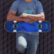 Slick e angular, este skate Bored de Brattle azul será a inveja do skate park. Adicione caminhões e rodas e faça rolagem.