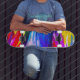 Onda de lindas cores como o oceano e o sol. Um design de elevação que todos vão notar e aproveitar durante a sua viagem de skate!