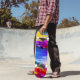 Onda de lindas cores como o oceano e o sol. Um design de elevação que todos vão notar e aproveitar durante a sua viagem de skate!