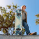 A beautiful scene with migrating birds on the skateboard and a backdrop of snow-clad mountains, rain and hailstorm. This design features nature's magic with shades of white and blue.