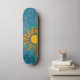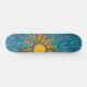 Bold retro color palette. Warm yellow, yellow orange, red orange, turquoise, and teal. Original drawing by artist KG Nowak. Sun rising.