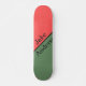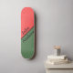 Minimalist design with red and green sides, divided by a black line at 45 degrees. Coral red, almost black and pine green.
