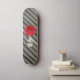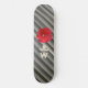 Uma flor de Hibiscus vermelho-arrojada num skate sofisticado e na moda com listras monocromáticas modernas em tons suaves de cinza personalizadas com Iniciais. Esta é a fotografia botânica original de JLW_Photografia.